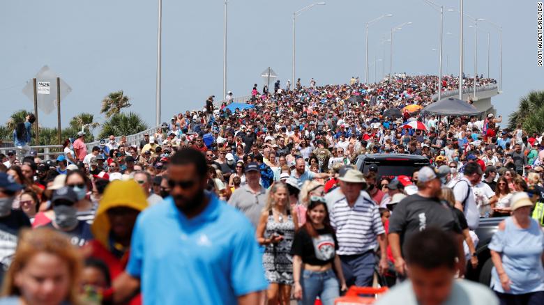 No terreno da Flórida, as autoridades locais estavam se preparando para um afluxo de espectadores que se esperava que se reunissem nas praias próximas, que foram reabertas recentemente após semanas de bloqueio em meio à batalha contra o Covid-19.
