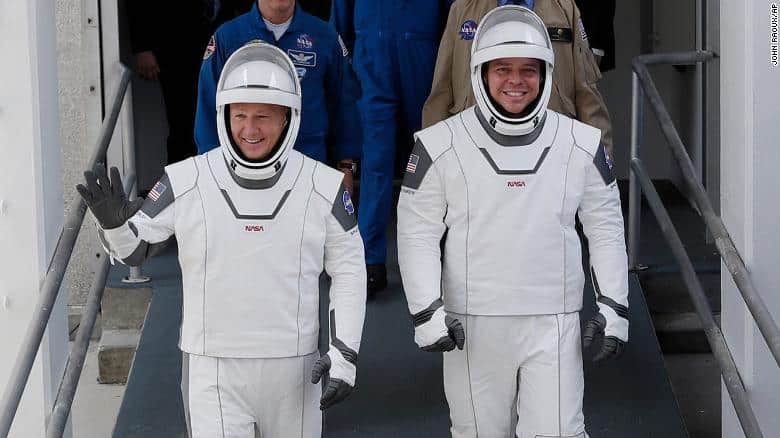 A decolagem ocorreu logo após as 15:20 ET (20:20 hora portuguesa) do Kennedy Space Center, na Flórida. Os astronautas Robert Behnken, 49, e Douglas Hurley, 53, passarão cerca de 19 horas a bordo da cápsula Crew Dragon da SpaceX, enquanto manobra lentamente em direção à Estação Espacial Internacional.